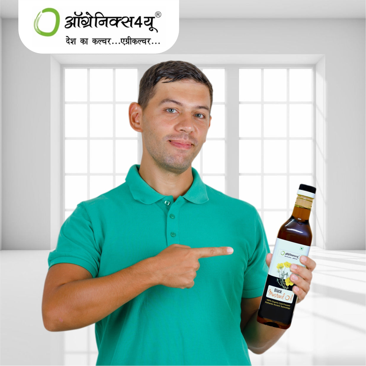 Organic Cold Pressed Black Mustard Oil In Glass Bottle - Mustard Oil For Cooking - Good For Heart Health - Pure Oil For Roasting, Frying, Baking All Type Of Cuisines
