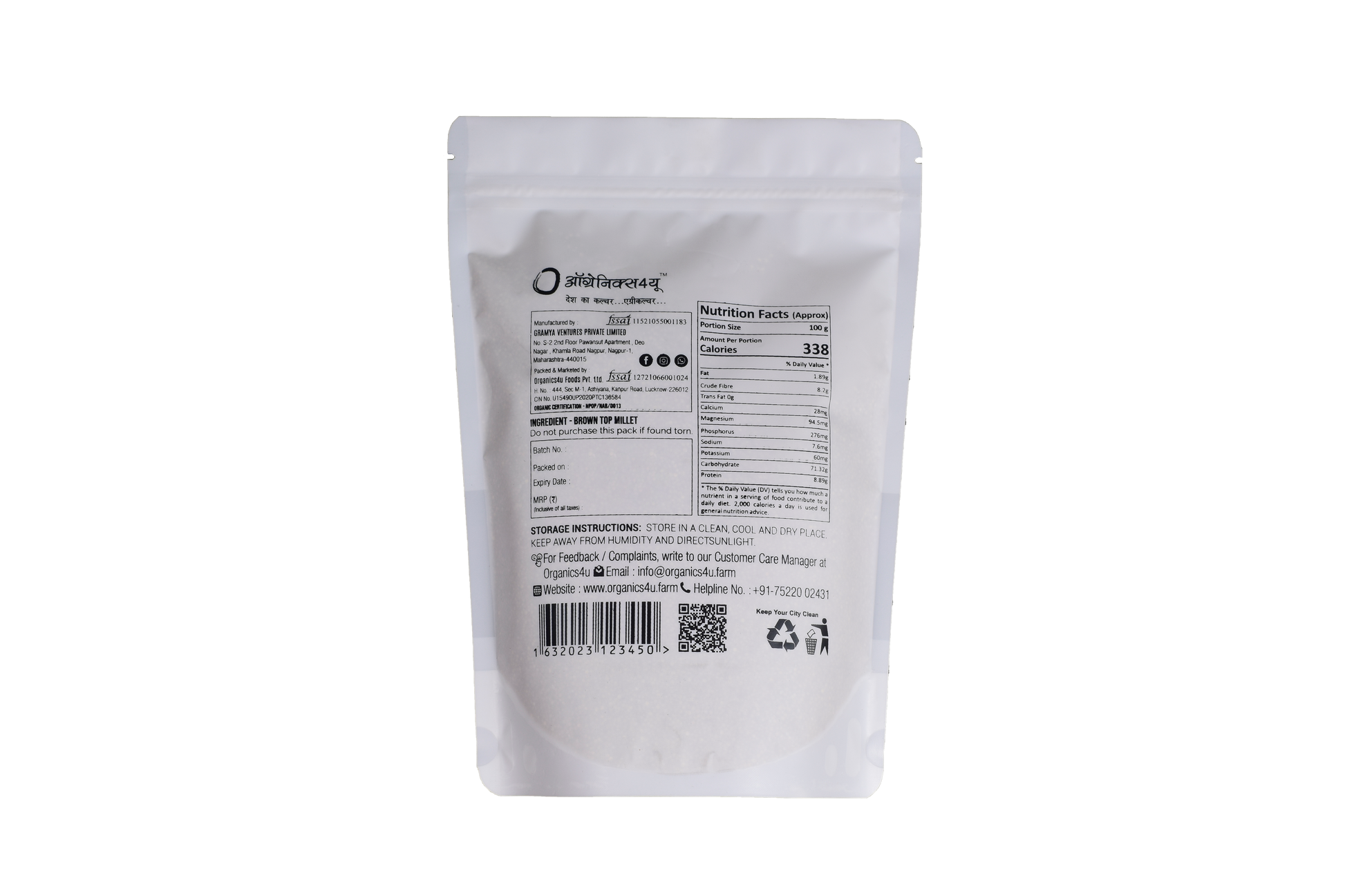 At Organics4U, our journey began with a commitment to providing the finest organic products, and Organic Brown Millet is no exception. Grown with care and integrity, our millet undergoes a meticulous production process to ensure its premium quality and purity.